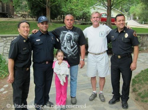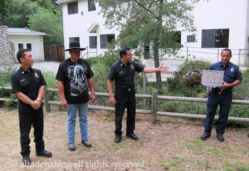In attendance were Dean Henninger and Corine Henninger, James Aguirre (who has written a book about the Henninger family) Julian Aguirre, Lucille Henninger Aguirre and her son Danny, Linda Henninger Escobeda, Donna Galvan, Tim Miguel, Jannine Longoria and her daughter Alanna. James Aguirre’s family are the direct descendants of William Henninger, the original owner of Henninger Flats. In attendance for LA County Fire, Forestry were Chief Frank Vidales, Chief Mike Takeshita, Deputy Jose Martinez and Ranger Johann Lockhard.