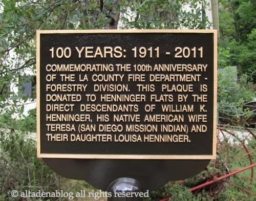I was honored to be part of a very special event at Henninger Flats on Friday, May 17. Rangers, deputies and chiefs from LA County Fire Forestry Division drove 11 of the original Henninger family members up the Mt. Wilson Toll Road to Henninger for a reunion and ceremony. They were there to install a commemorative plaque they had donated to recognize the 100th anniversary of LA County Fire Forestry Division which has owned the flats since 1928.