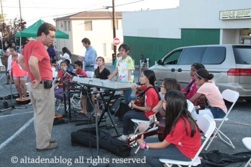 2. The fifth grade “McKinley Rock Stars” from McKinley Elementary School, led by teacher Raimer Rojas, get ready for another set as part of Fancy Food Truck Friday entertainment.