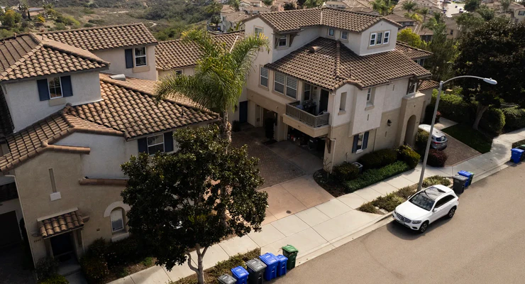 Adam Hardesty’s home in Carlsbad on Feb. 19, 2025. Hardesty faced opposition from his homeowners association when he sought to convert his three-story condo into a ground-floor apartment. California HOA fines are capped at $100 per violation under a new law. Photo by Adriana Heldiz, CalMatters