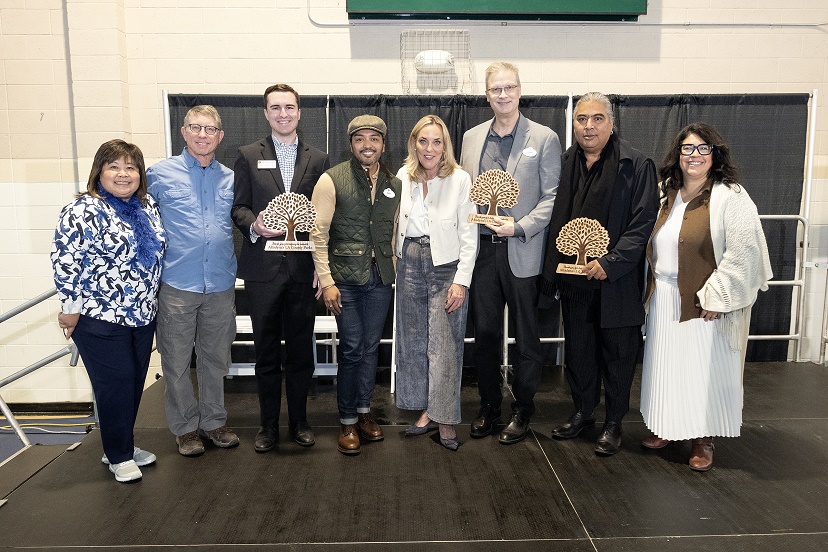 Supervisor Kathryn Barger and Norma E. García-González, Director of LA County Department of Parks and Recreation, pose alongside Rhoi Carpena with The Walt Disney Company and event attendees (Photo credit: Diandra Jay, LA County)