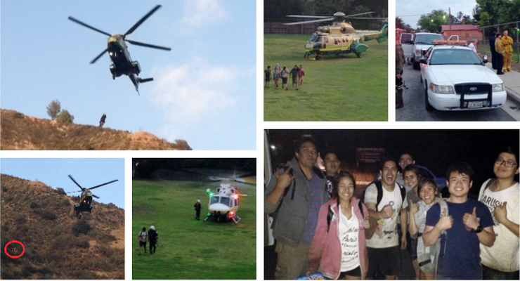 “As my wife and I hiked up the Mt. Wilson Toll Road towards Henninger Flats, our attention was drawn to a group of nine teenagers who were shouting for assistance from an adjacent ridge off of Kinneloa Canyon,” Mather told Altadena Now. “They were stuck on the ridge in very steep terrain, unable to move up or down, and in thick brush.”