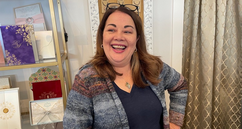 Caroline Britton of Carciofi Design Paper Boutique & Studio during Mariposa Junction’s grand reopening on Saturday, November 22, 2025. [Eddie Rivera / Pasadena Now]