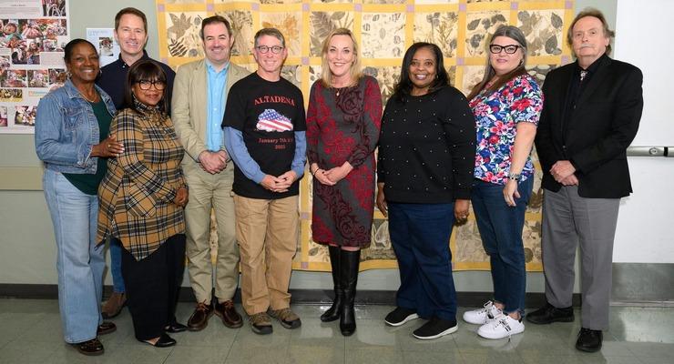 Left to right: Veronica Jones with Altadena Historical Society, Nic Arnzen with Altadena Town Council, Judy Matthews with Altadena Chamber of Commerce, Hans Allhoff with Altadena Heritage, Mark Mariscal with Altadena Rotary, Supervisor Kathryn Barger, Wilberta Richardson with Altadena NAACP, Victoria Knapp with ACONA, Michael Bicay with AltadenaWild. [Courtesy photo]