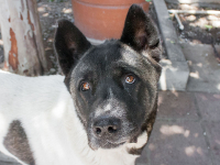 A382547Juliet (A382547) is a 10-year-old spayed female white and black Akita. She loves treats and enjoys going for slow walks. Juliet had a mass removed from her chest, but has since recovered nicely. She’s a senior who would do well in a home where she can relax and live out her golden years in comfort. Because of her age, Juliet qualifies for our Seniors for Seniors program which waives the adoption fee for adopters age 60 and up. The mandatory microchip fee of $20 still applies.